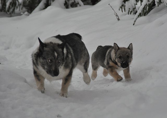 Pikku Elviira on jo ihan mopon kokoinen. Nimikin on käytössä lyhentynny Elviksi. Täytyykin varotella naapurin Elviä, jos joskus kuulee kaimaansa mettästä huudettavan ;)